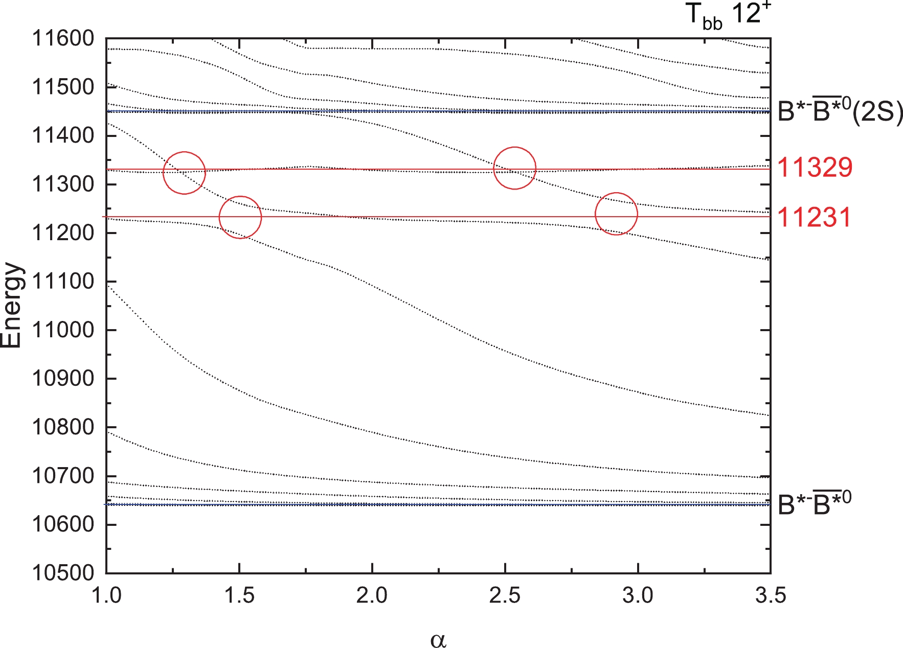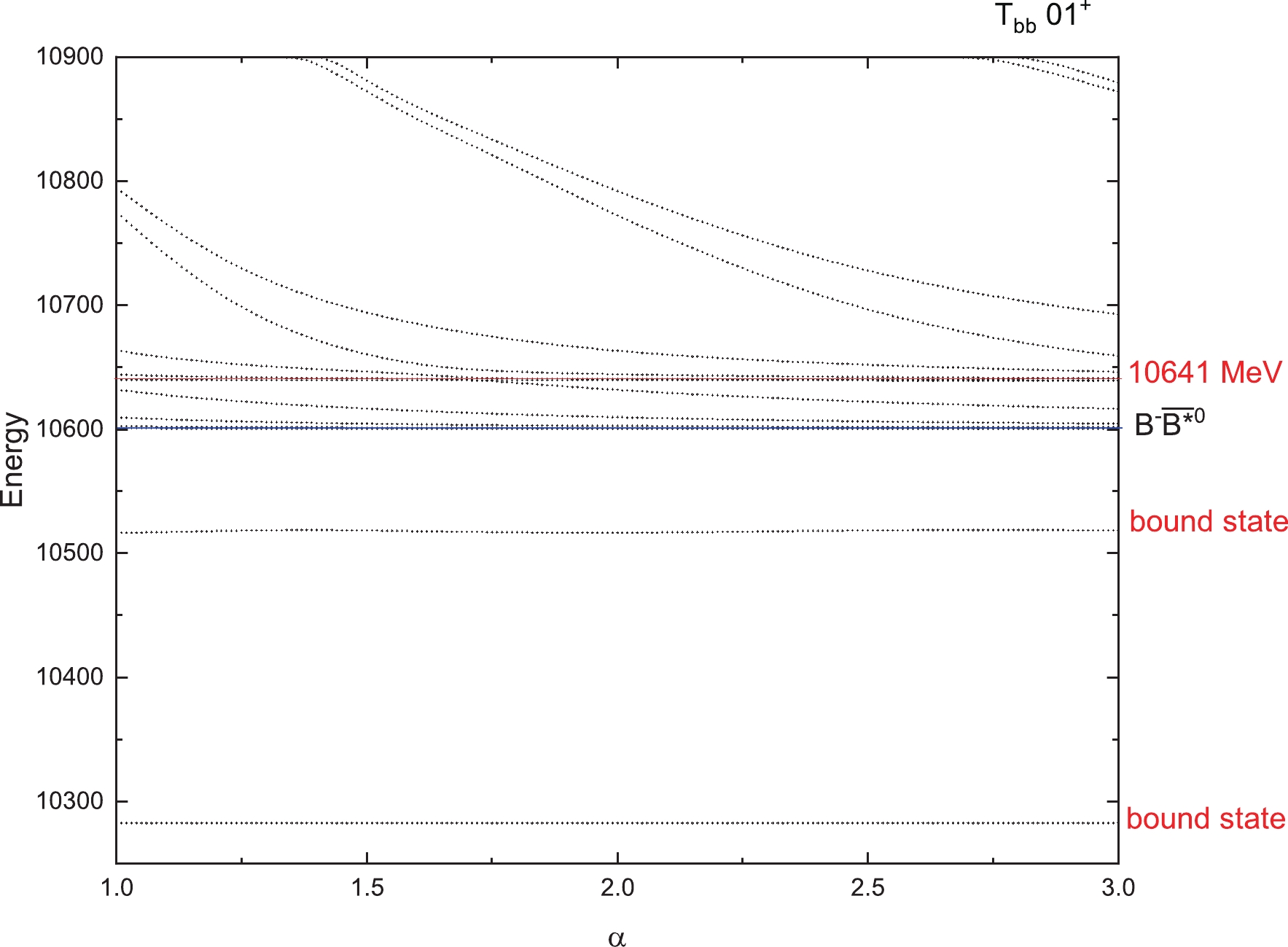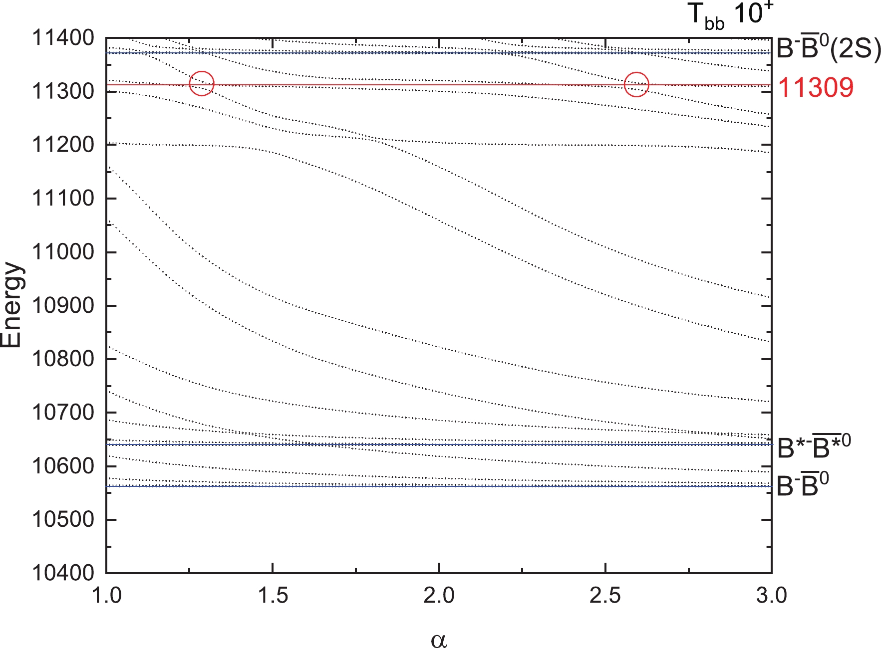 $ T_{bb} $ states for$ I(J^P)=0(1^+) $ with respect to the scaling factor α.Figure 3 represents the