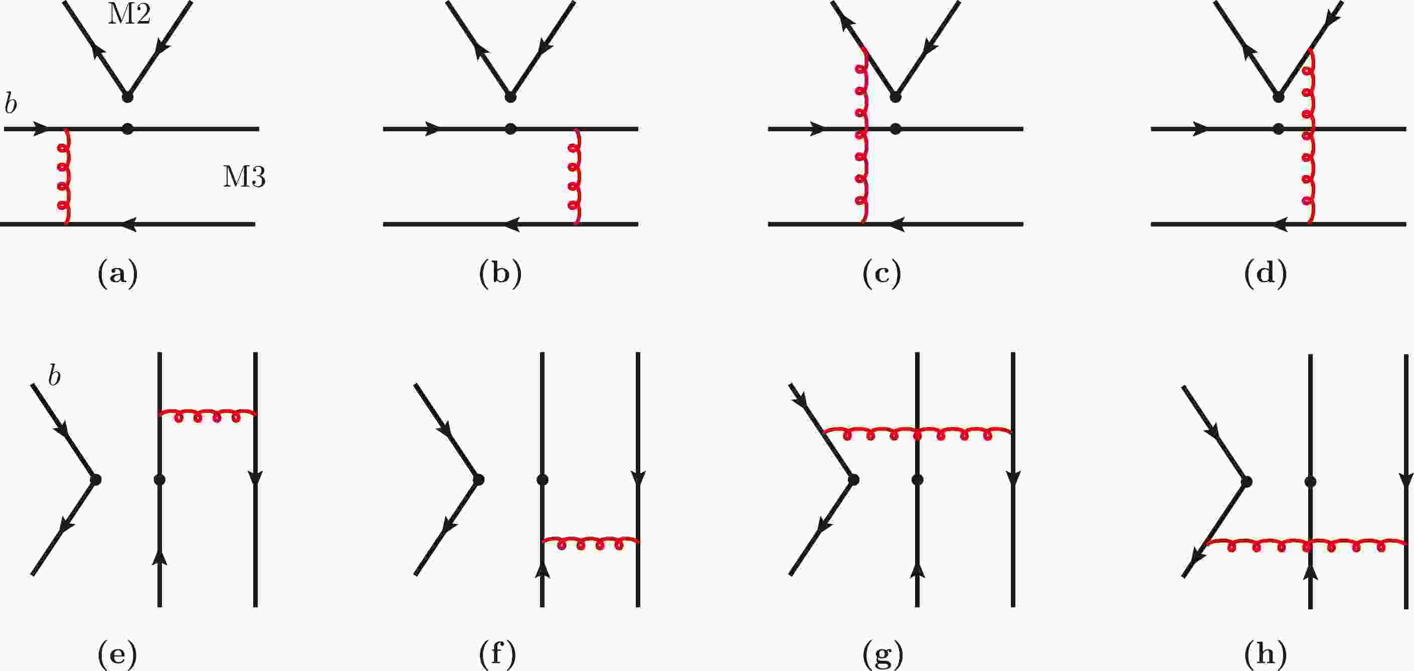 $ x_1^2x_2 $ , which appears in the denominator of the decay amplitude. The range of a parton momentum fraction x is not experimentally controllable and spans from 0 to 1. Hence, the endpoint region with$ x \to 0 $ is unavoidable. The leading twist distribution amplitude is proportional to x; therefore, the leading diagram in Fig. 1(a) and (b) diverges in the endpoint region. In QCDF, researchers argue that these two diagrams can be treated as the generalized factorization approach and are products of transition form factors and the meson decay constant. As a result, the most important diagrams in the numerical calculation of the QCDF are not perturbatively calculable.
