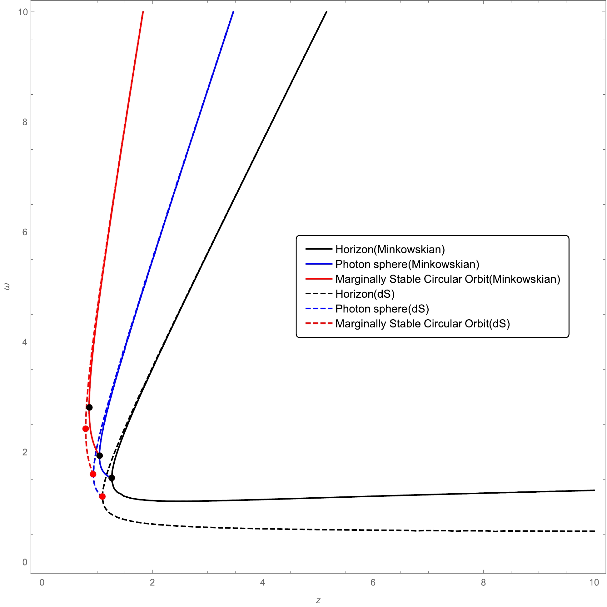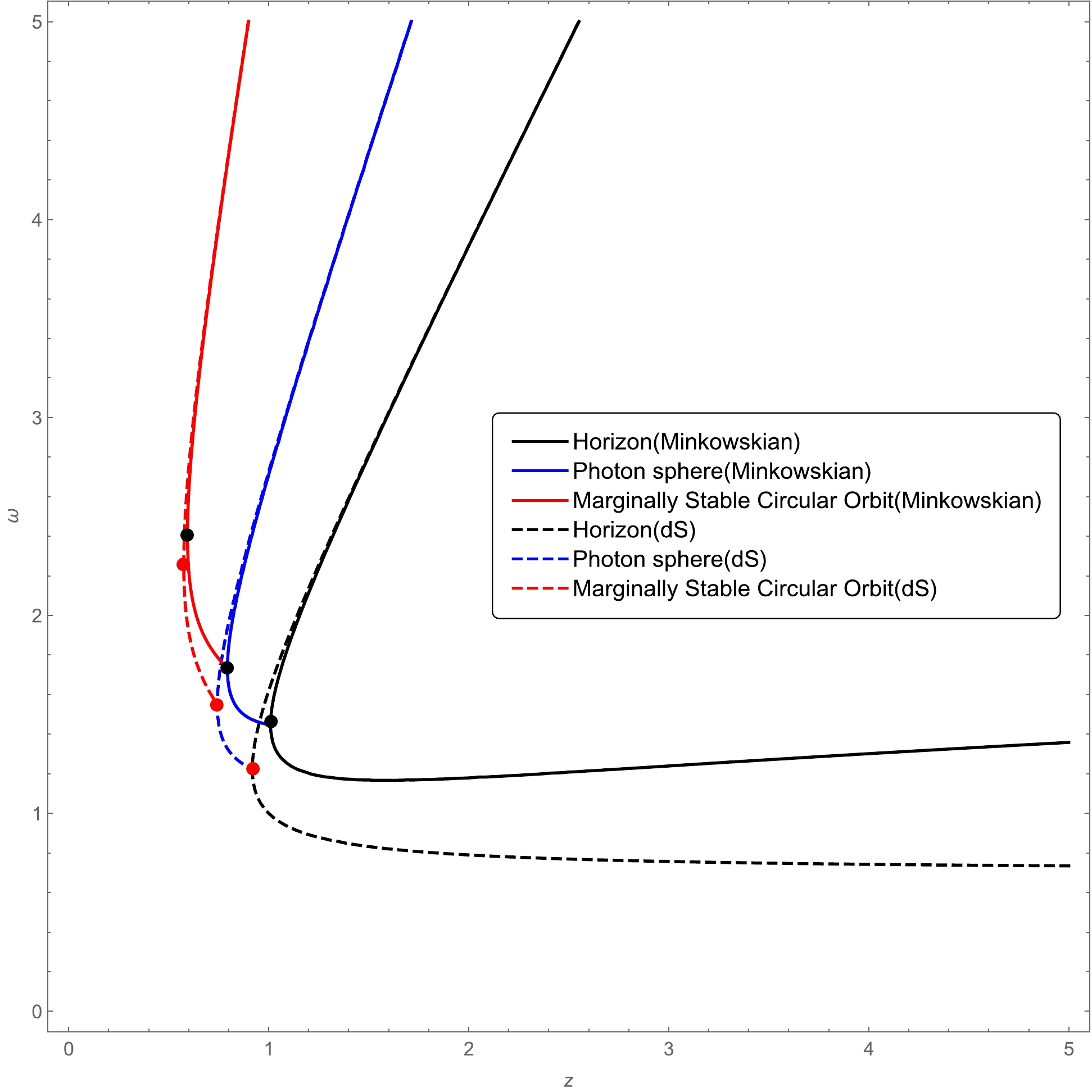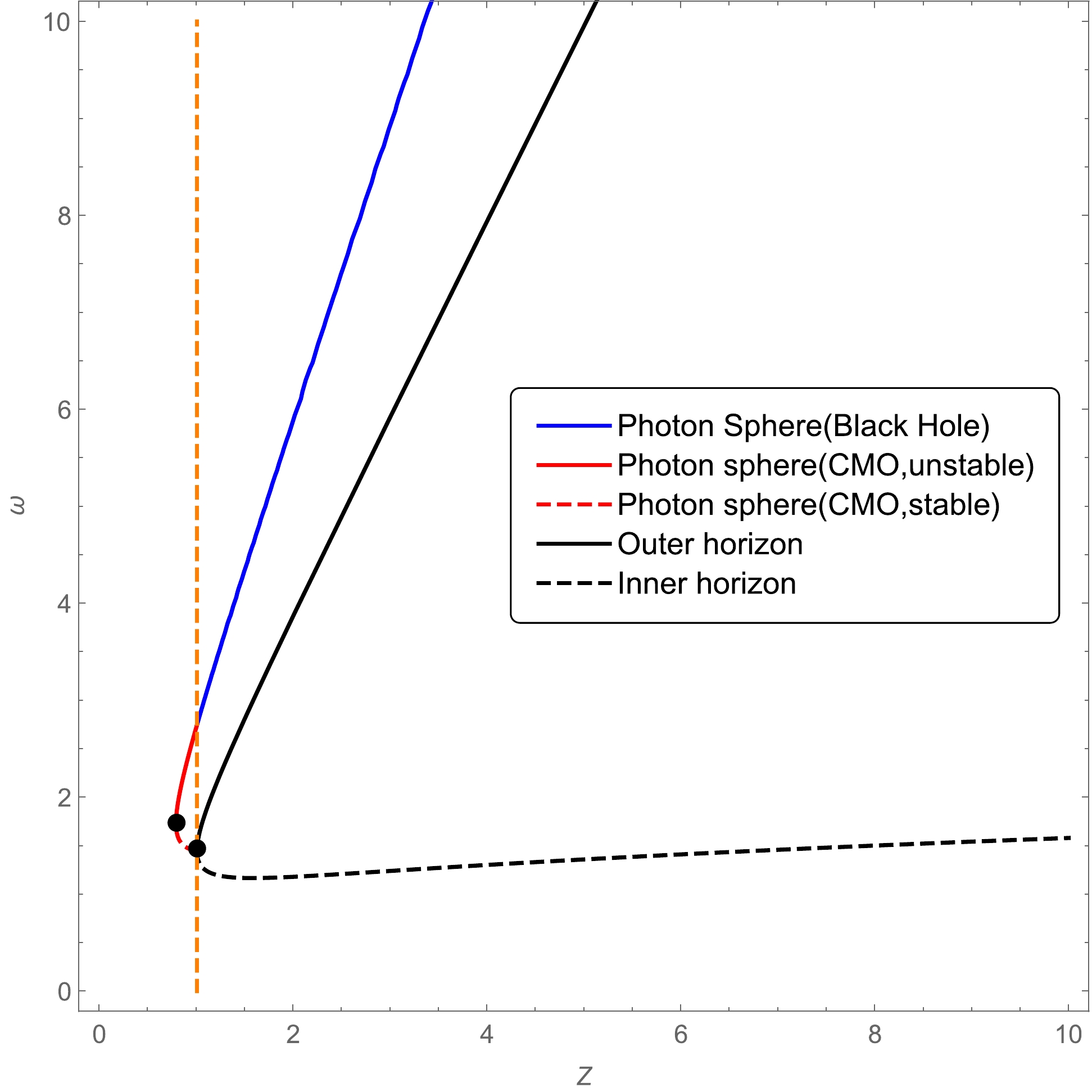 Table 1. Turning points of the curves representing the location of the horizon, photon sphere, and marginally stable circular orbit in the