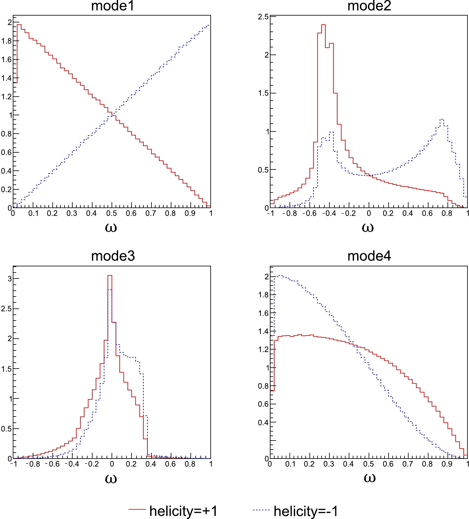 $ helicity=+1 $ and$ -1 $ , respectively. All the spectra are generated using Pythia8 genarator and TAUOLA interface.Using two templates with