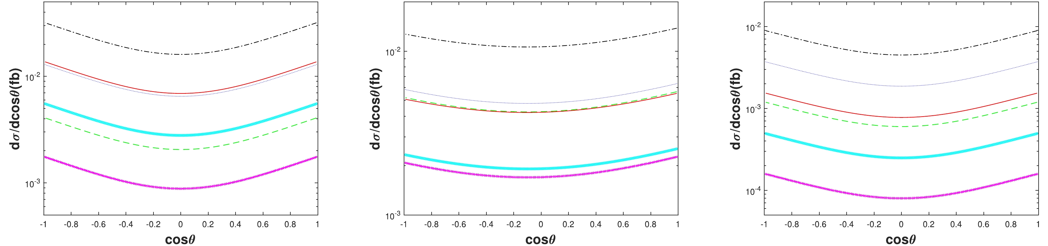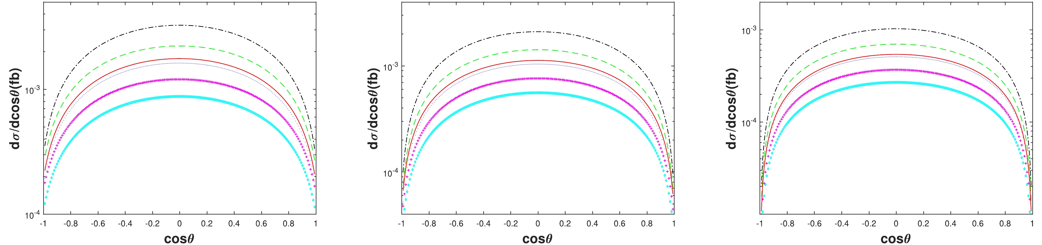 In Figs. 2−4, we depict the distribution dσ/dcosθ at
